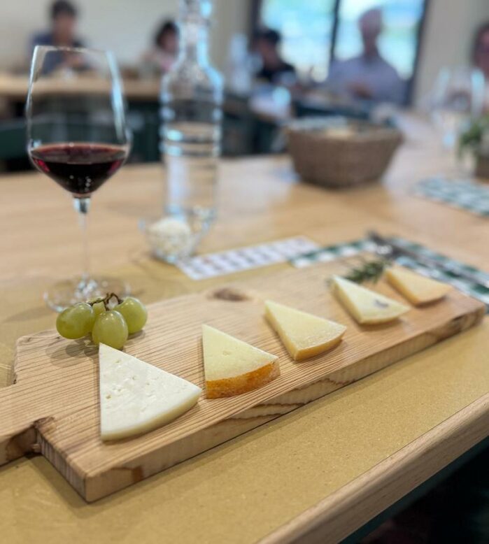 The next afternoon we travelled to the hills of Pienza, to the Cugusi Dairy where they make pecorino cheese, the typical hard cheese of the area, made from sheep’s milk. Their animals graze on herbs on the hills of the Val d’Orcia which gives the cheese its distinctive flavour. We were able to try the various cheeses as they aged starting with a mild pecorino progressing to an aged stagionato cheese. I enjoyed all of them but I preferred the aged pecorino which is very tasty with the unsalted bread.