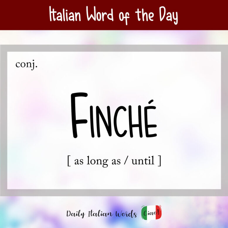 The other day, my friend Jean – who runs a series of Italian language immersion trips in Italy – admitted that she was still struggling with the correct usage of the conjunction finché in Italian. Surprised that I hadn’t already covered this word, I promised her I’d make it a priority, so here we are!