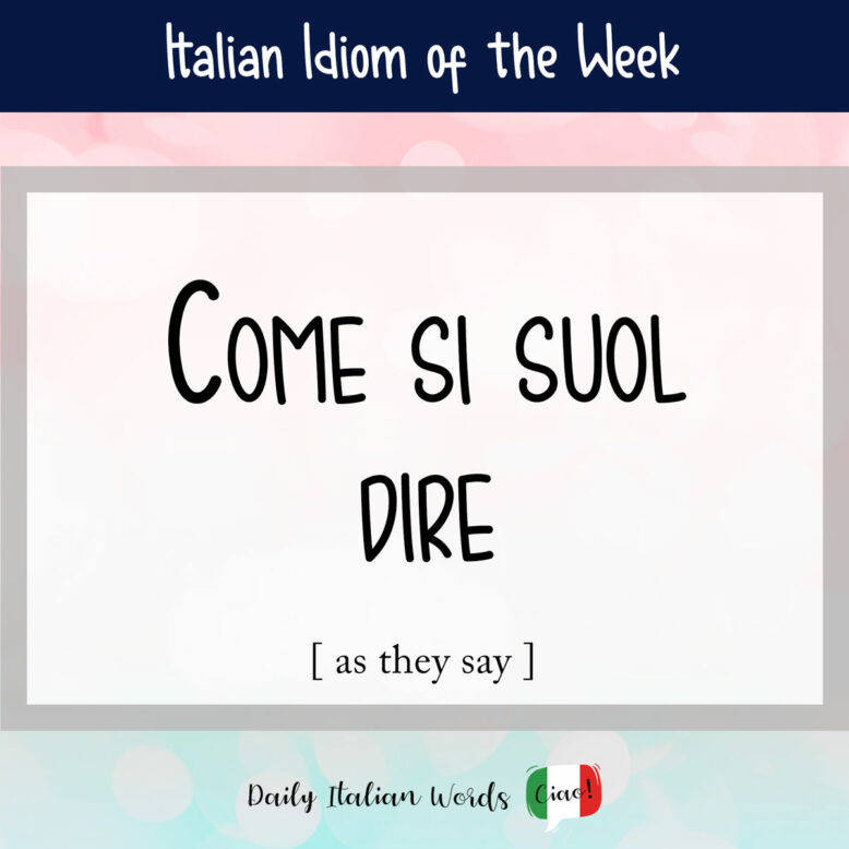 And before you ask – no, the si before suol does not make solere a reflexive verb. This si is actually an impersonal pronoun, with the meaning of “one” as in “one eats pizza” or “one goes to the store”. This means that come si suol dire can also be translated as “as one says”.