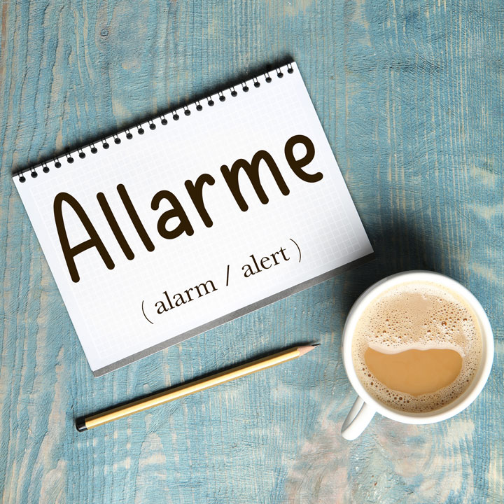 What allarme cannot refer to however is an alarm clock, which is known as a sveglia (derived from the verb svegliare ‘to wake up’).