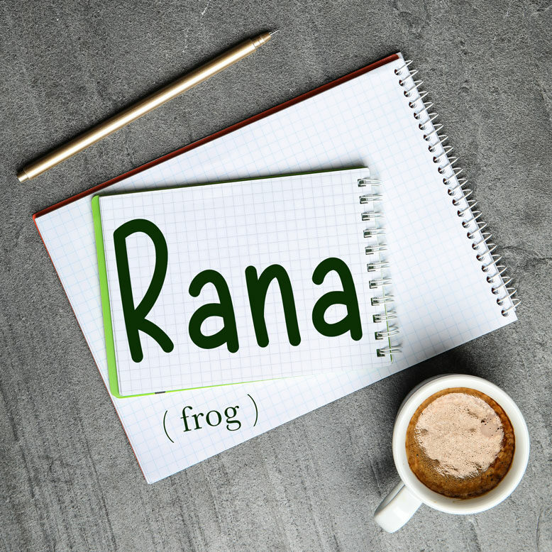The Italian word for a frog is rana. It derives from the Latin word of the same spelling.