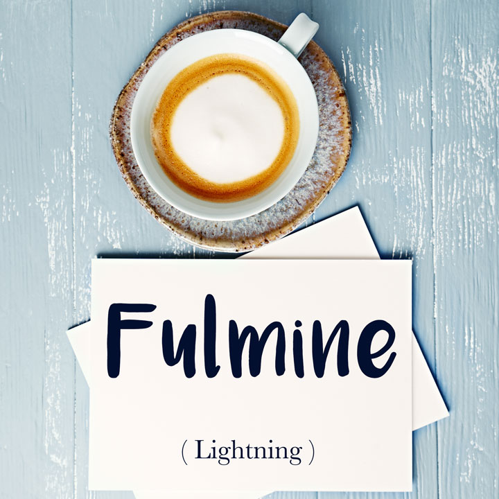 Another word that translates as lightning is lampo. Whereas fulmine refers to the occurrence of a natural electrical discharge between a cloud and the ground or within a cloud (or in simpler terms, a lightning bolt), lampo is the bright flash of light produced from the discharge of the bolt (a flash of lightning).