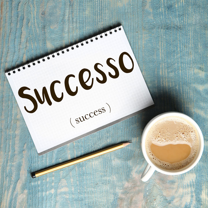The Italian word for success is the similar sounding successo (masculine, plural: successi). Both words can be traced back to the Latin word “successus” of the same meaning.