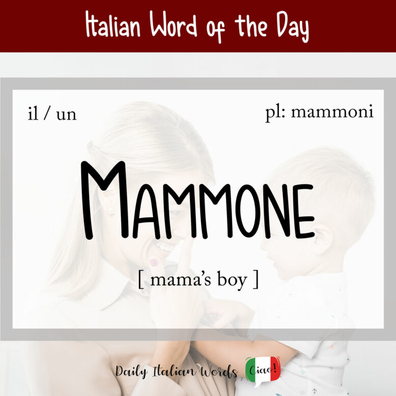 The word mammone is a combination of the word mamma (mom) and the augmentative masculine suffix -one (big) which is added to the end of nouns. The literal translation would be something along the lines of ‘big mom’ but it always refers to the child, not the mother.