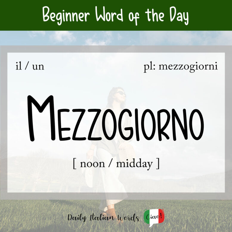 Mezzogiorno is the combination of the words mezzo (half or halfway) and giorno (day). It is a masculine noun, so it takes the following definite and indefinite articles: