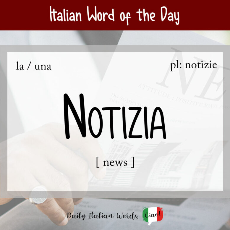 It’s a feminine noun (plural: notizie), and it comes from the Latin notus, meaning “known.” Here are its definite and indefinite articles:
