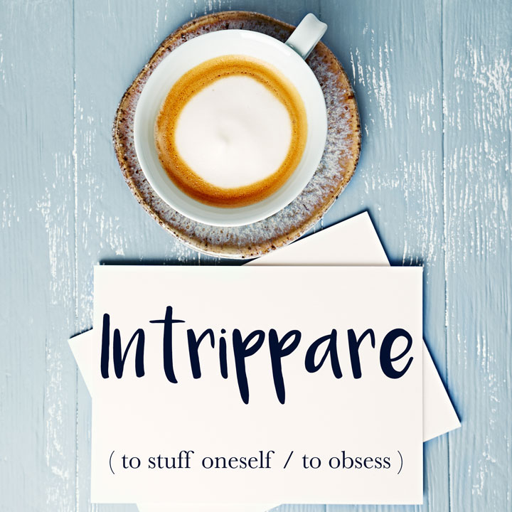 Now if you look the verb up in authoritative dictionaries like Treccani, the only thing you’ll find is the literal definition, which is to stuff oneself (with food). Apparently the verb derives from the word trippa, a humorous way of saying tummy in Italian. (It also means tripe.)
