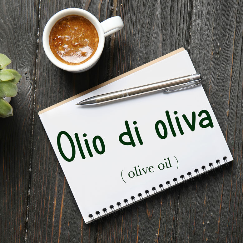 Olio di oliva – or olive oil in English – is technically three words, but they appear together so often that we figured you’d let us off the hook, just this once! 😉