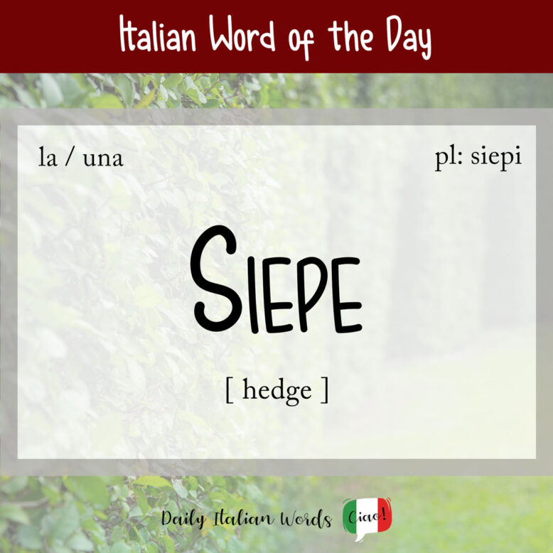 The word for a boundary formed by closely grown bushes or shrubs is known as a siepe in Italian. It derives from the Latin word saepes.