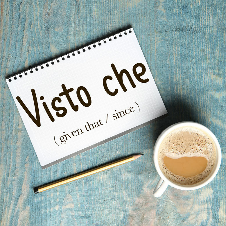 Sometimes you may hear the colloquial expression visto e considerato che which literally means “seeing and considering that”.