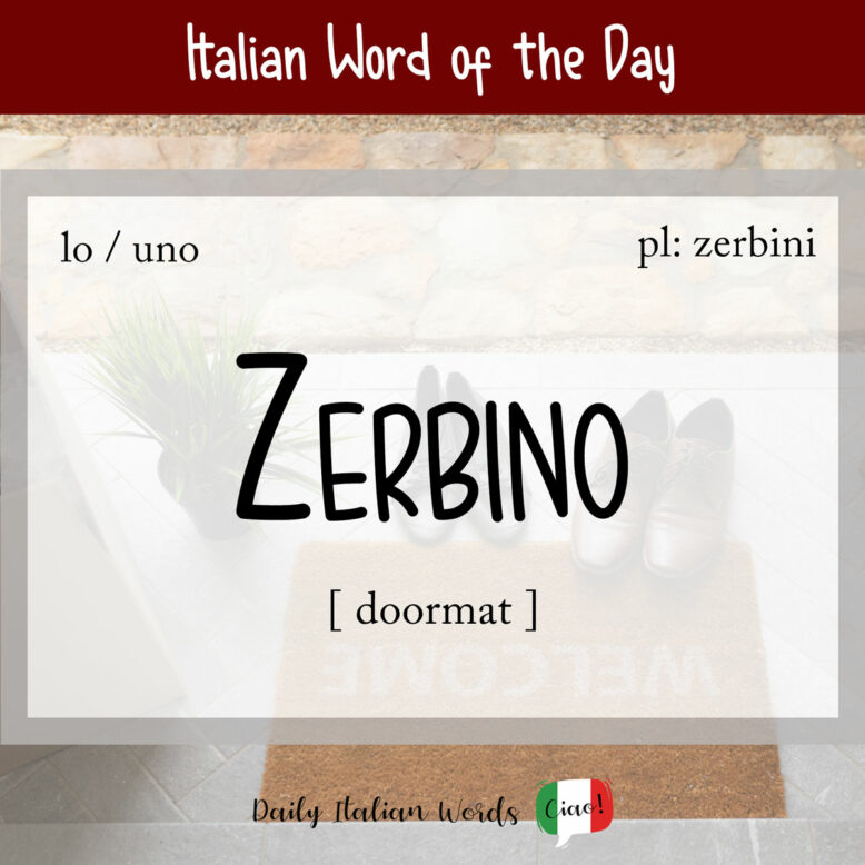Today’s word is zerbino which, as exotic as it sounds, actually refers to the humblest of household objects: the doormat. It comes from the Arabic zirbiy which translates as either rug or cushion.